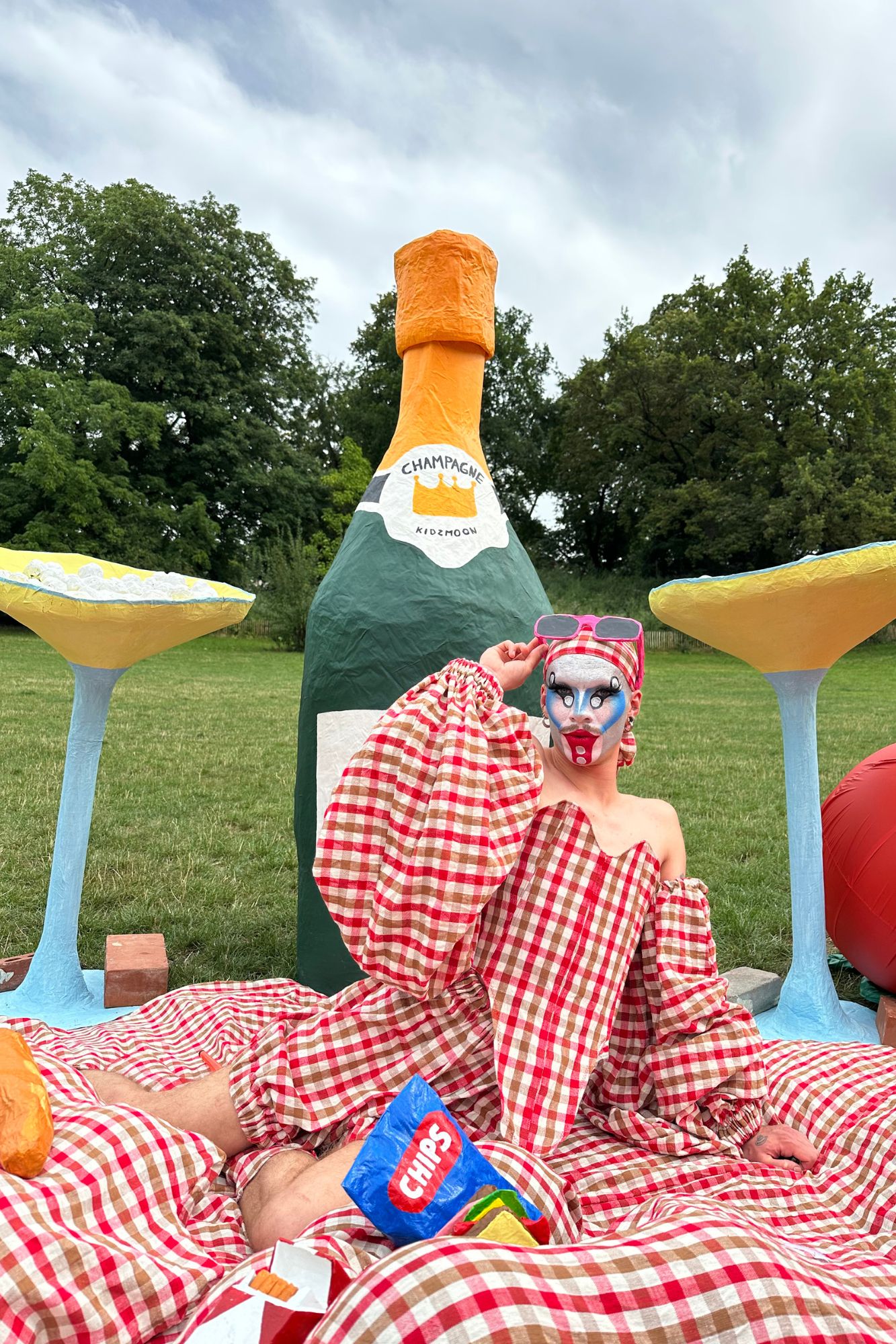 A drag performance takes the form of a picnic in the park. In collaboration with drag artist Kidzmoon, the project unfolds a playful and strange story, blending performance, storytelling, and outdoor spectacle.