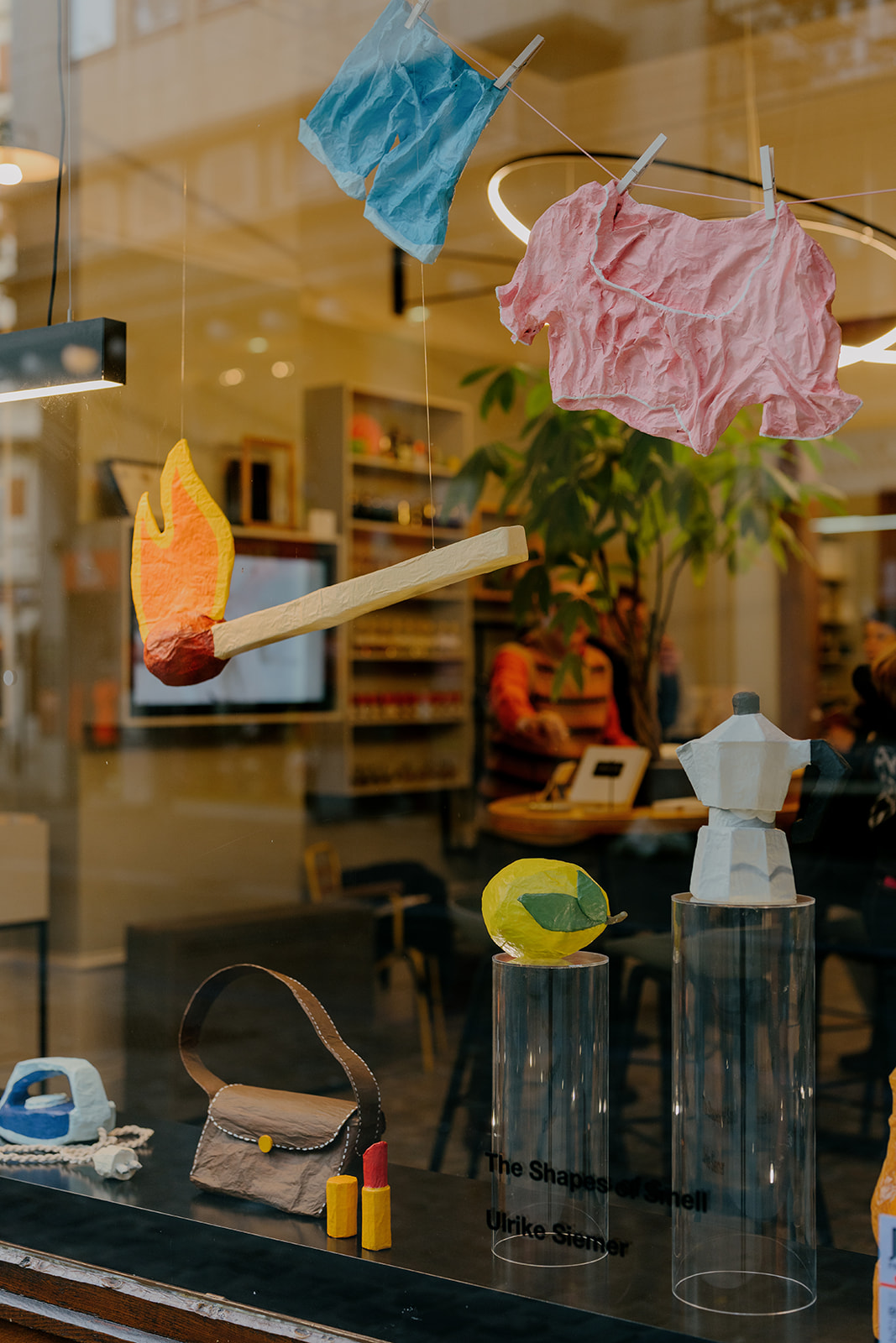 Ulrike creates sculptures and objects in papier-mâché, often used in scenography, window displays, and decor for films or photoshoots. Her work combines playful forms, vibrant colors, and everyday details, exploring how objects can be touched, worn, or used in different contexts.